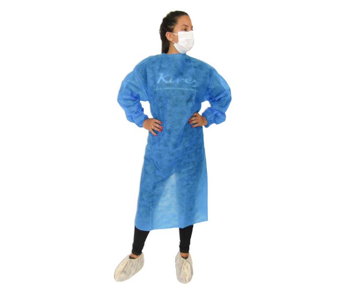 Descartável, é inteiramente confeccionado em tecido não tecido (TNT) 100% polipropileno do tipo agulhado, por processo de costura overloque.