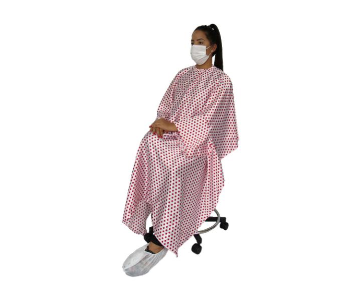 A capa de corte de cetim da Kaitalo é linda e muito fácil de usar, possui tudo que o cliente necessita para se proteger de pequenos e inesperados acidentes com o manuseio de produtos e para proteção contra pelugem no corte de cabelo