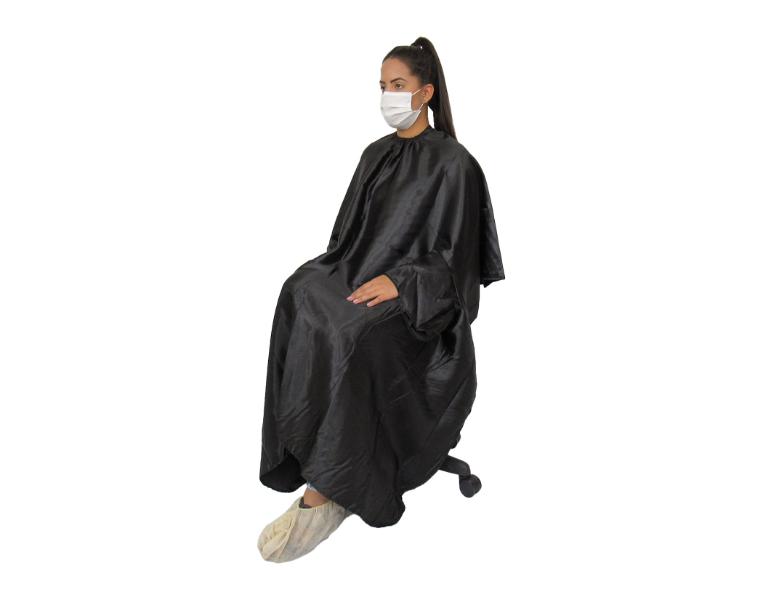 A capa de corte de cetim da Kaitalo é linda e muito fácil de usar, possui tudo que o cliente necessita para se proteger de pequenos e inesperados acidentes com o manuseio de produtos e para proteção contra pelugem no corte de cabelo