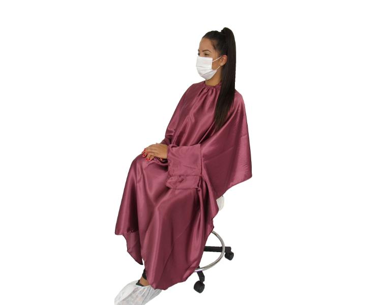 A capa de corte de cetim da Kaitalo é linda e muito fácil de usar, possui tudo que o cliente necessita para se proteger de pequenos e inesperados acidentes com o manuseio de produtos e para proteção contra pelugem no corte de cabelo