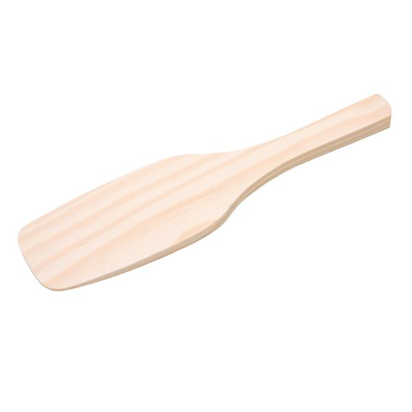A espátula grande em madeira pode ser utilizada para o manuseio e preparo de cosméticos ou outros produtos relacionados.